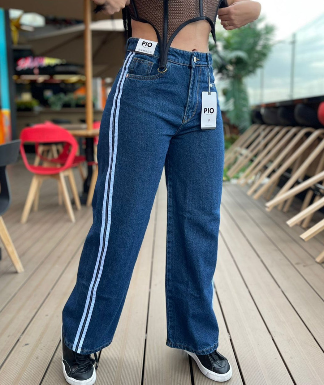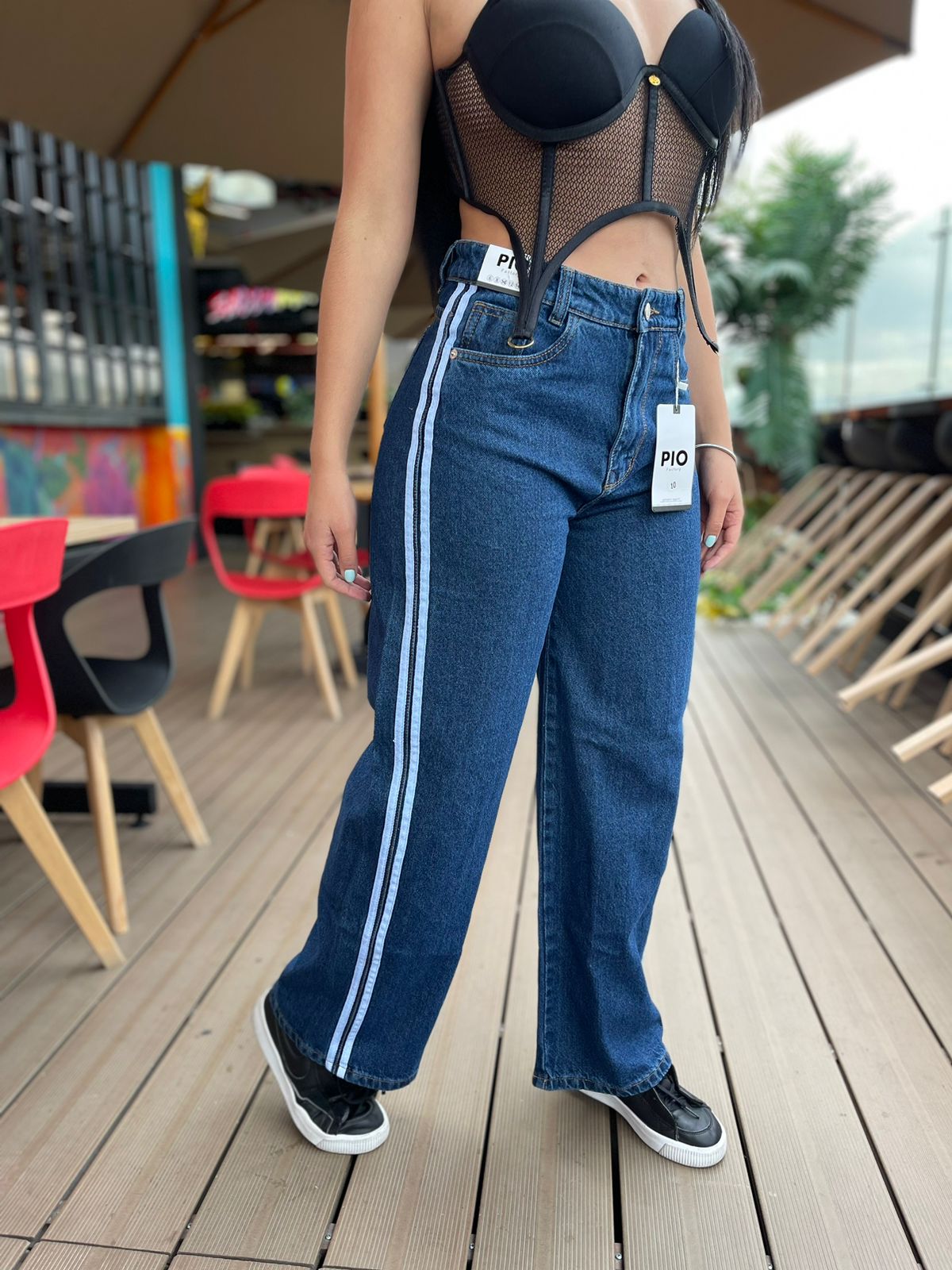 Jeans straight wide fit de tiro alto con bolsillos delanteros. Bolsillos de plastrón en espalda. Cintura con trabillas. Pernera recta y ancha. Cierre frontal con cremallera y botón metálico