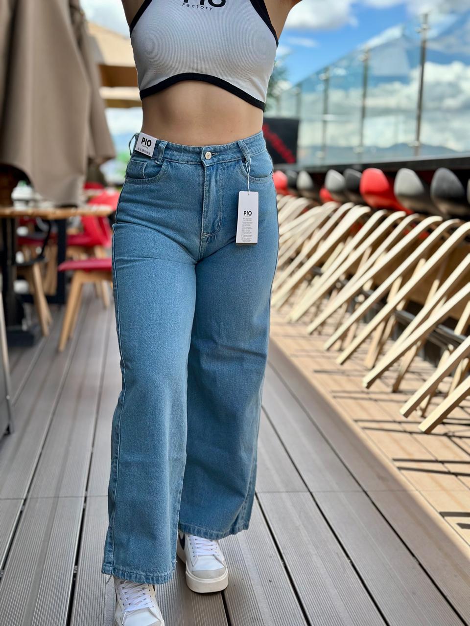 Jeans straight wide fit de tiro alto con bolsillos delanteros. Bolsillos de plastrón en espalda. Cintura con trabillas. Pernera recta y ancha. Cierre frontal con cremallera y botón metálico